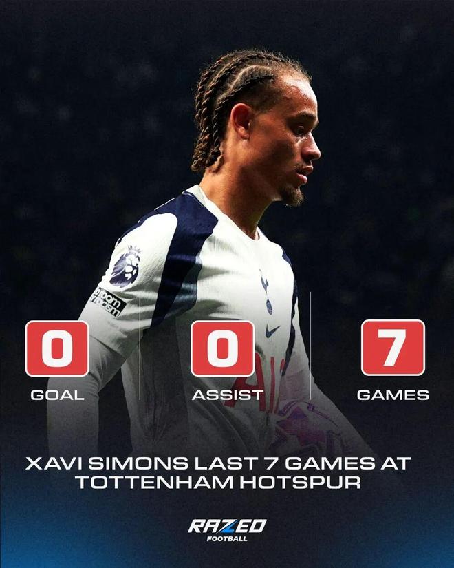 整个夏天,哈维-西蒙斯都是切尔西的追逐目标,但热刺最终在8月份胜出,成功引进了这位“超级天才”。记者格雷姆·贝利也证实,热刺的高层认为他们完成了一笔重磅签约。然而到目前为止,我们尚未看到那种世界级的天赋。西蒙斯在8场比赛中仅助攻1次,尚未取得进球。